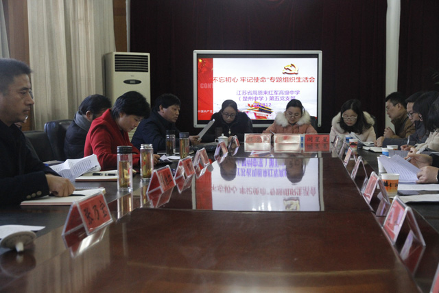 根据区教育工委的统一安排部署,并报请教育工委“不忘初心 牢记使命”主题教育领导组批准,日前,江苏省周恩来红军高级中学(楚州中学)第五党支部召开组织生活会。区主题教育第十四指导组组长钟百超、组员周继红,区教体局党委委员管晓蓉、教育科副科长陈秀荣出席会议。校党总支书记、校长张乃宝以普通党员的身份出席了会议,第五支部全体党员参加了这次会议,会议由第五支部书记赵立同副校长主持。