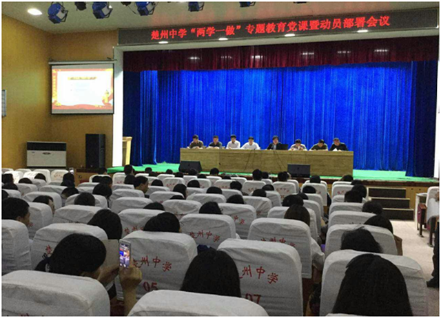 (楚州中学“两学一做”专题党课暨动员部署大会会议现场)