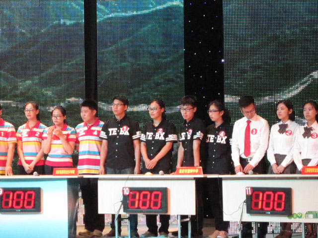 竞赛围绕国防历史知识、军事高科技知识、国防法规、国防常识以及党史、军史等内容,以个人必答、小组抢答等形式进行。赛场上,我校拉拉队高举“爱我国防,扬我军威”标牌,为参赛选手加油助威。竞赛中,各参赛队充分显现了自己的实力。竞赛结束后,淮安市委副书记练月琴,淮安市委宣传部副部长、淮安广播电视台台长陆志群,淮安军分区领导,淮安市教育局领导,分别为获奖同学颁奖。